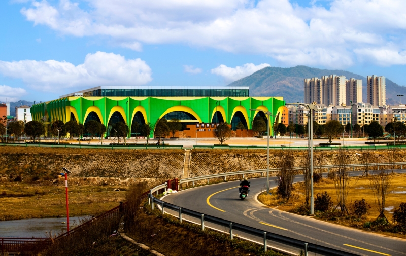 蓝天白云下的桃江游泳馆 张劲松 摄