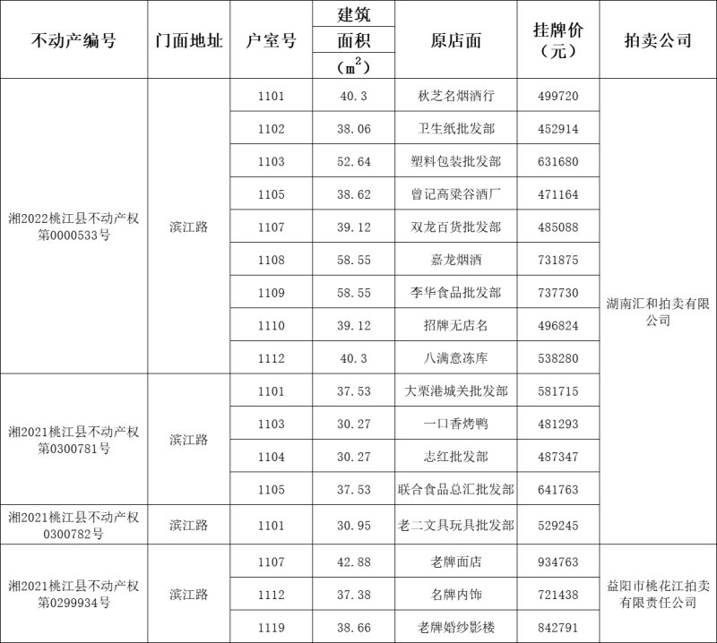 经桃江县人民政府批准,桃江县住房保障服务中心决定以公开拍卖方式转让滨江路17宗商业门面。现将有关事项公告如下: